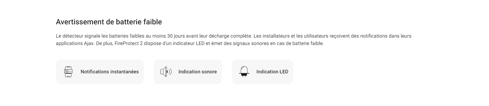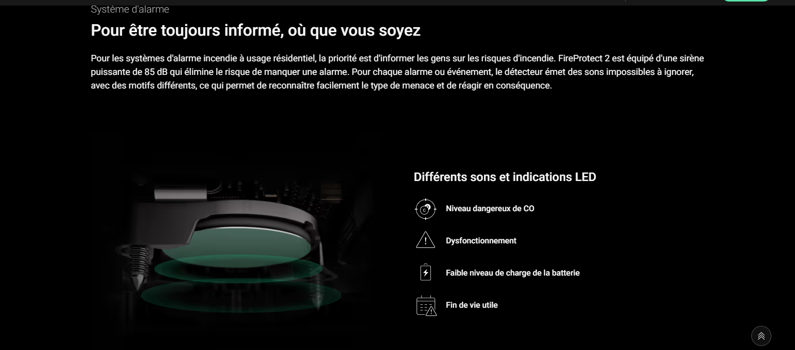 • Notification sonore des alarmes. Actif jusqu’à ce que la raison du déclenchement soit éliminée ou que l’utilisateur désactive la notification.