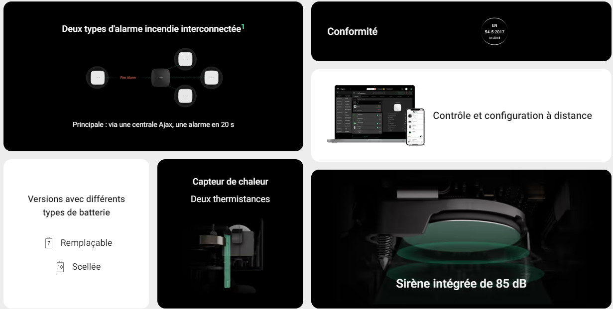 Détecteur sans fil de chaleur avec batteries remplaçables.