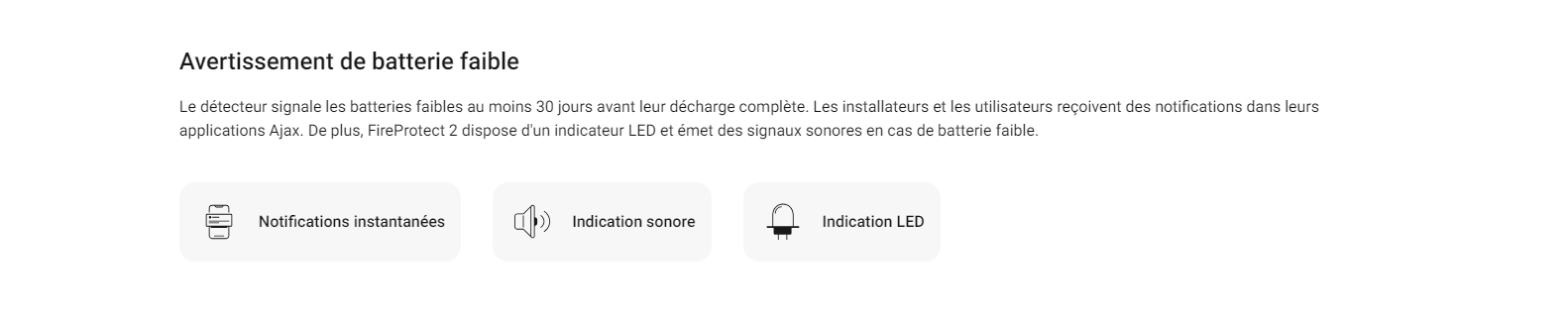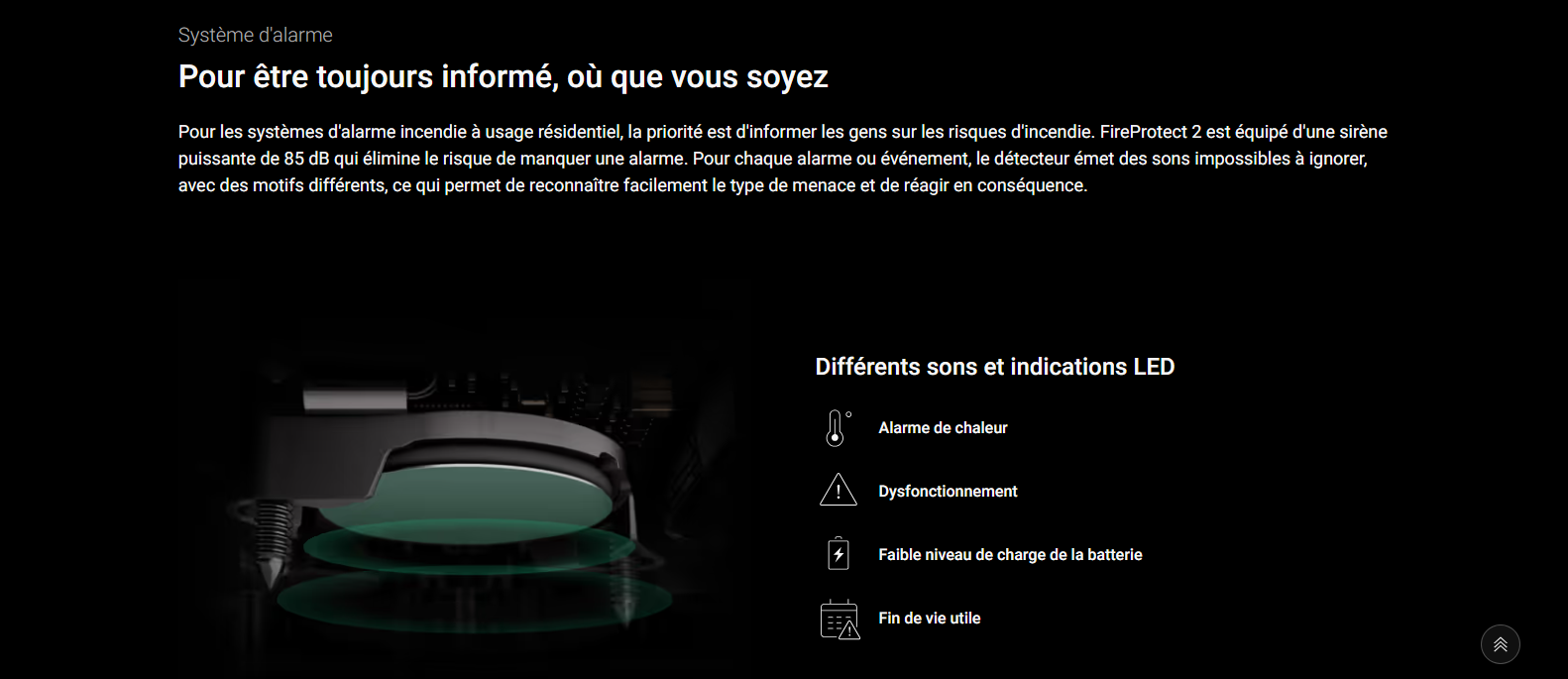 Notification sonore des alarmes. Actif jusqu’à ce que la raison du déclenchement soit éliminée ou que l’utilisateur désactive la notification.