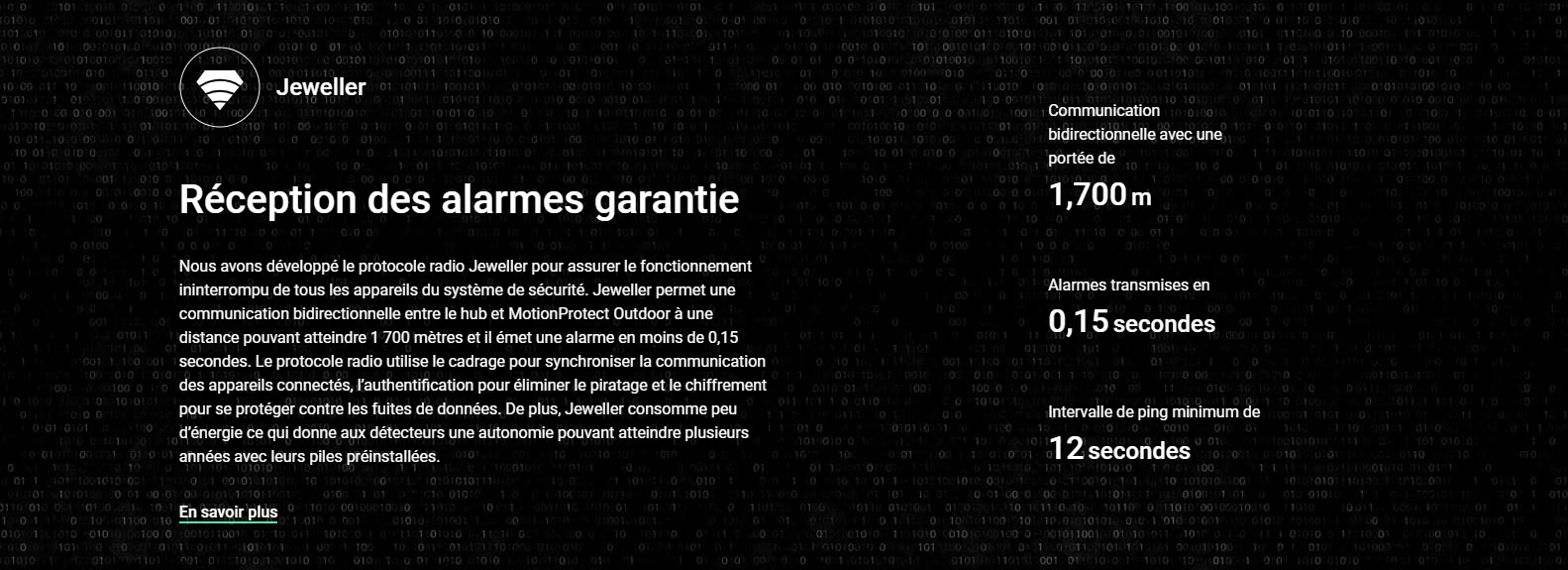 • Technologie propriétaire de communication sans fil pour transmettre les commandes, les alarmes et les événements.